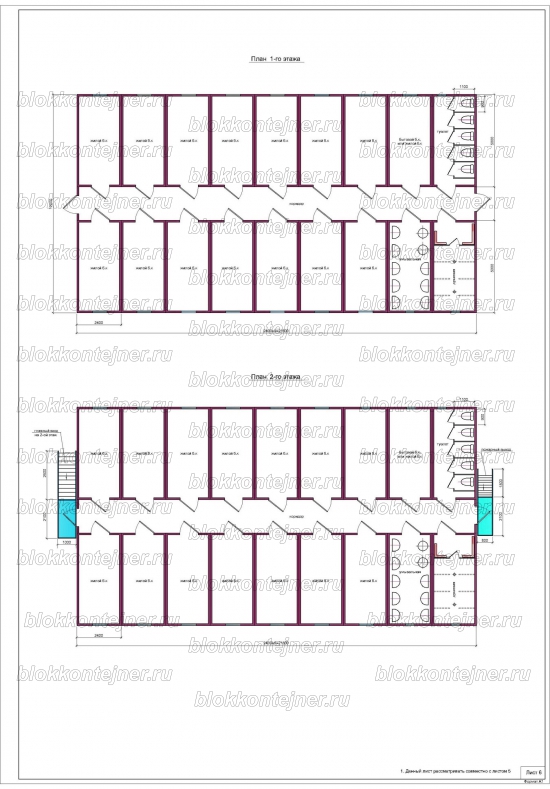 Двухэтажное общежитие из 36 БК, на 100 человек
