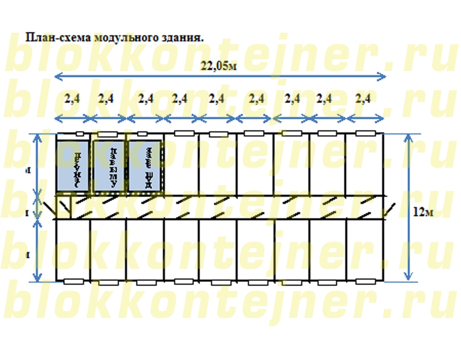 Модульное здание 22,05м *12,0м*2,5м